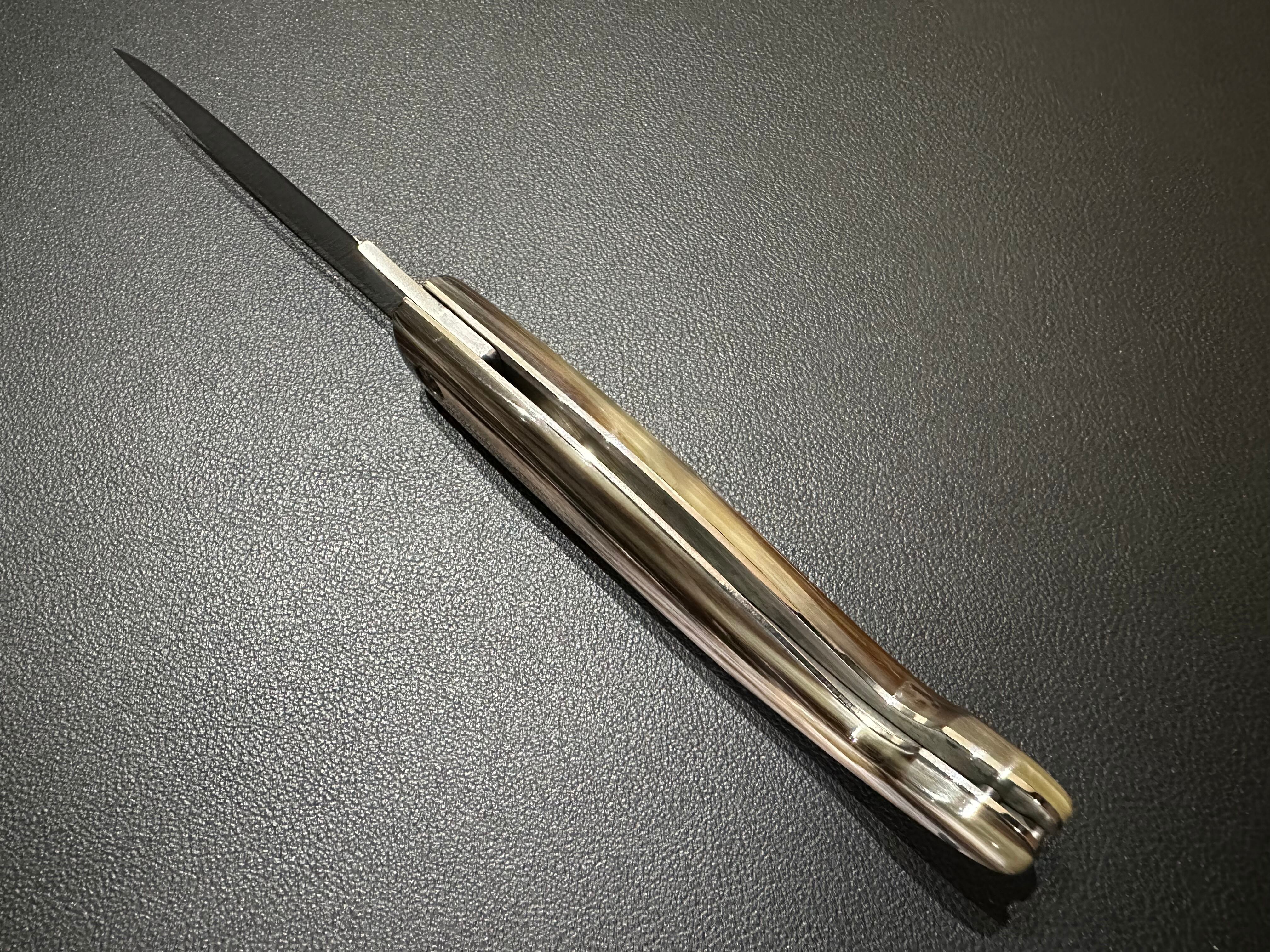 シンプルなスプリングとサイディング付きの片平刃のコレクターズナイフです。
