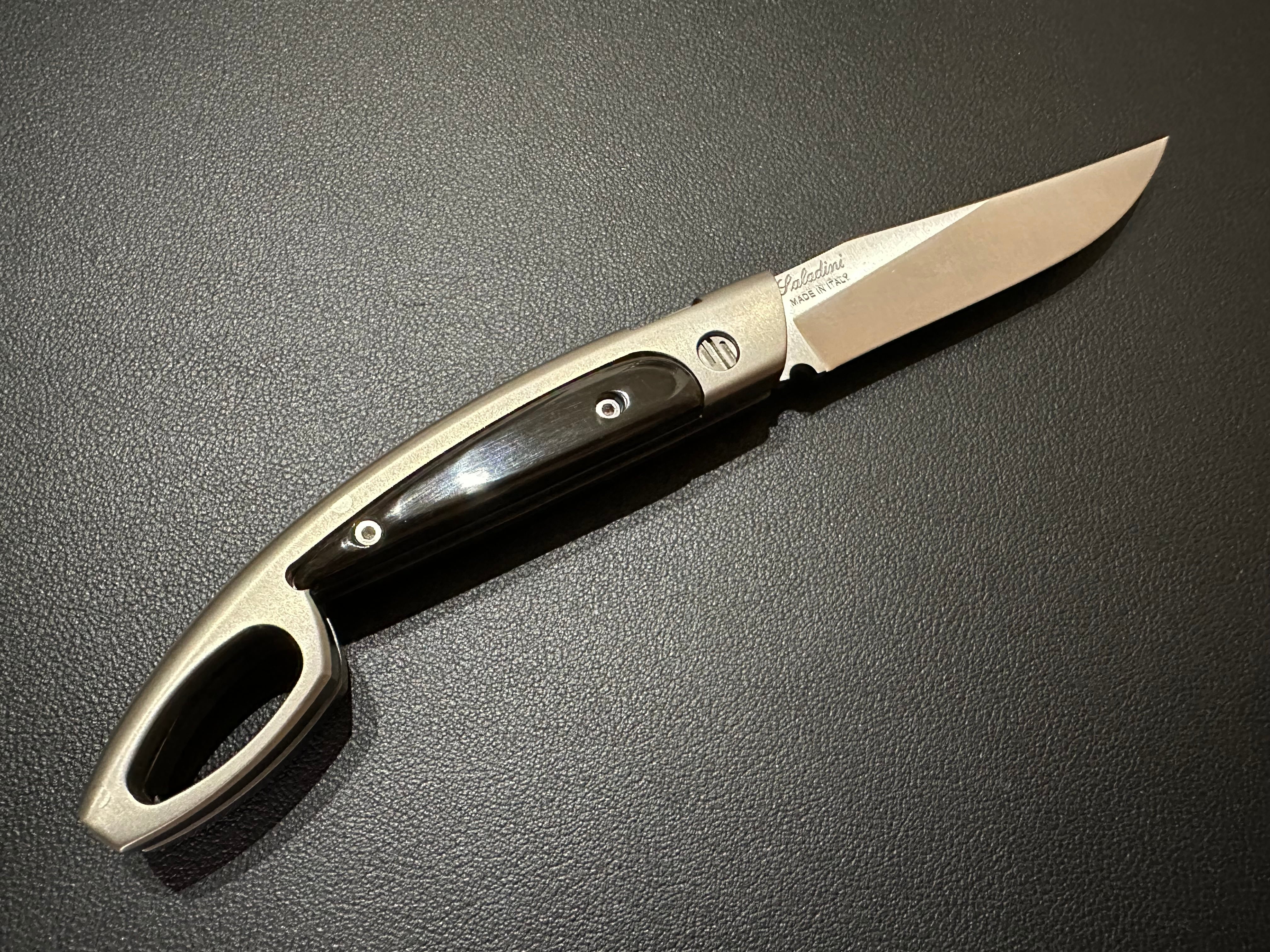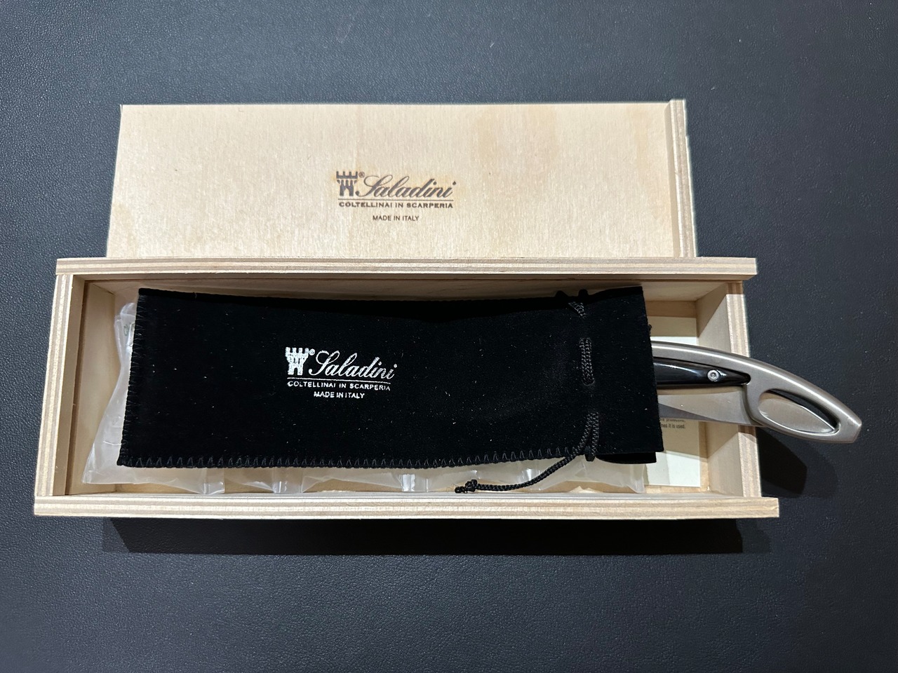 このコレクターズナイフは、ジャコモ・チェッキがデザインしたナイフ「ロ・スカルペリア」の複製品で、スカルペリア創立700周年とサラディーニ社の10周年を記念して、わずか10本のみの限定シリーズで作られました。