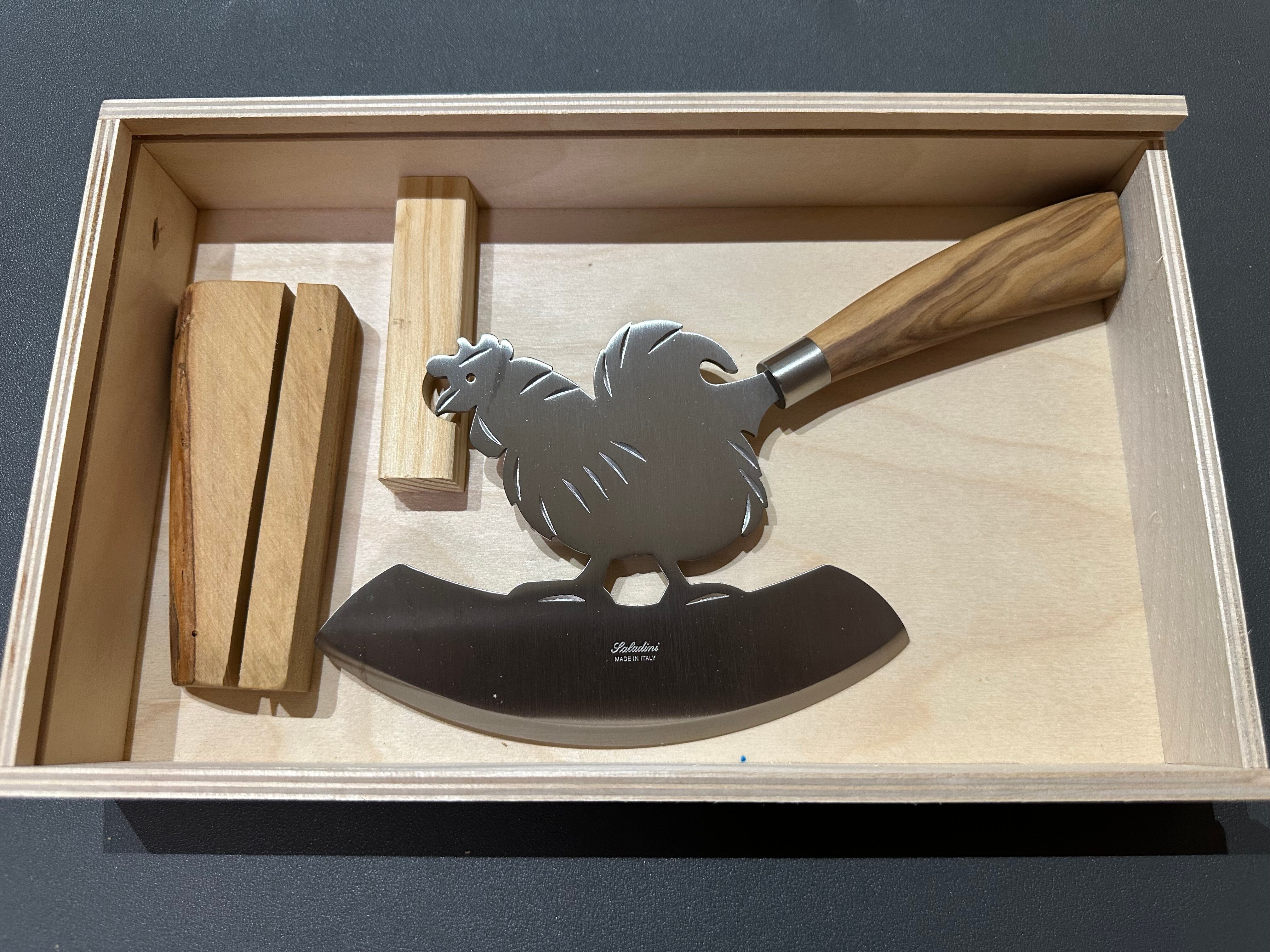 イタリア料理でバジルやパセリなどのハーブを細かく刻むときに使うナイフです。