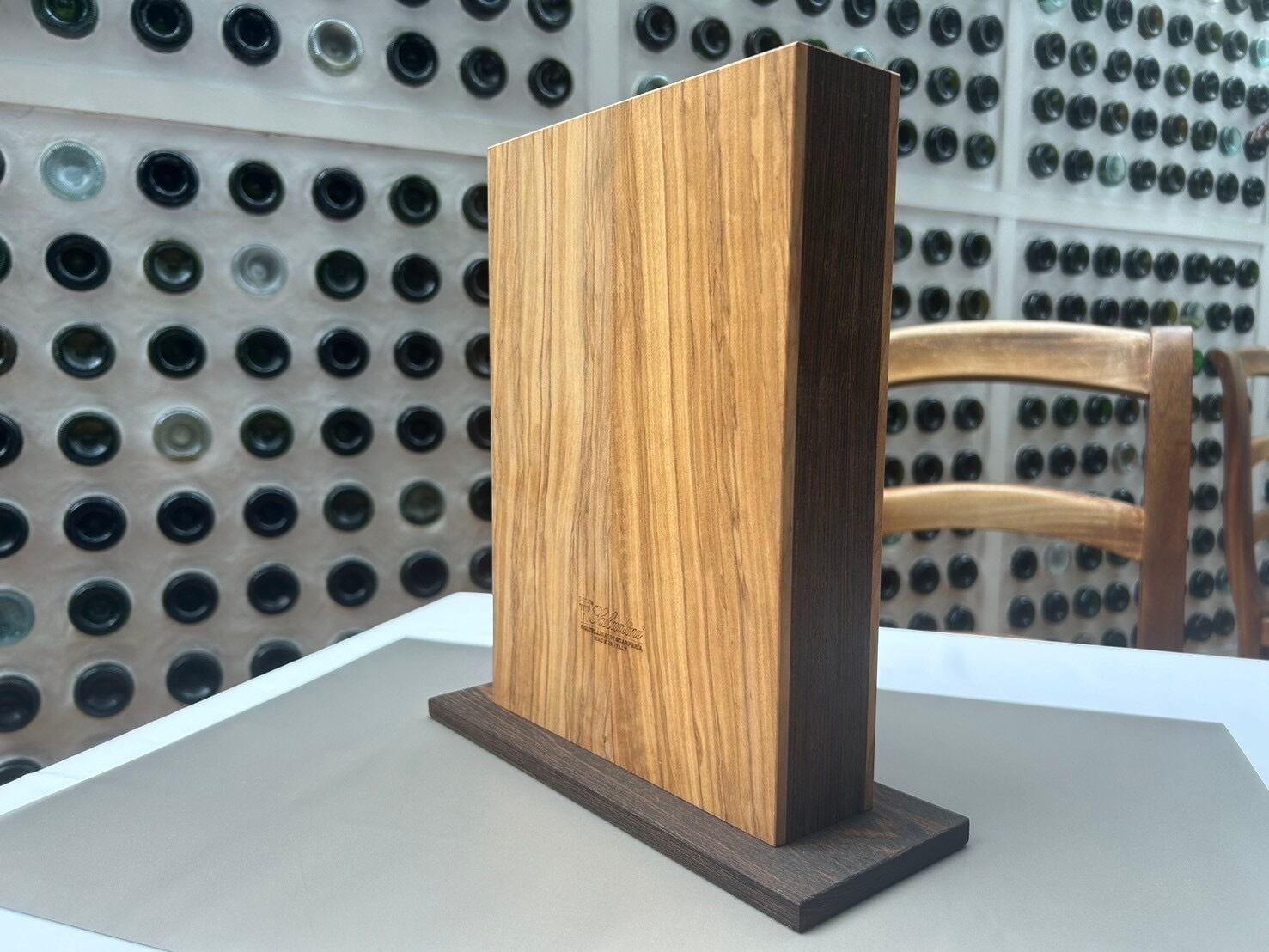 キッチンナイフを5本収納できるイタリアンオリーブウッド製の垂直ログです。