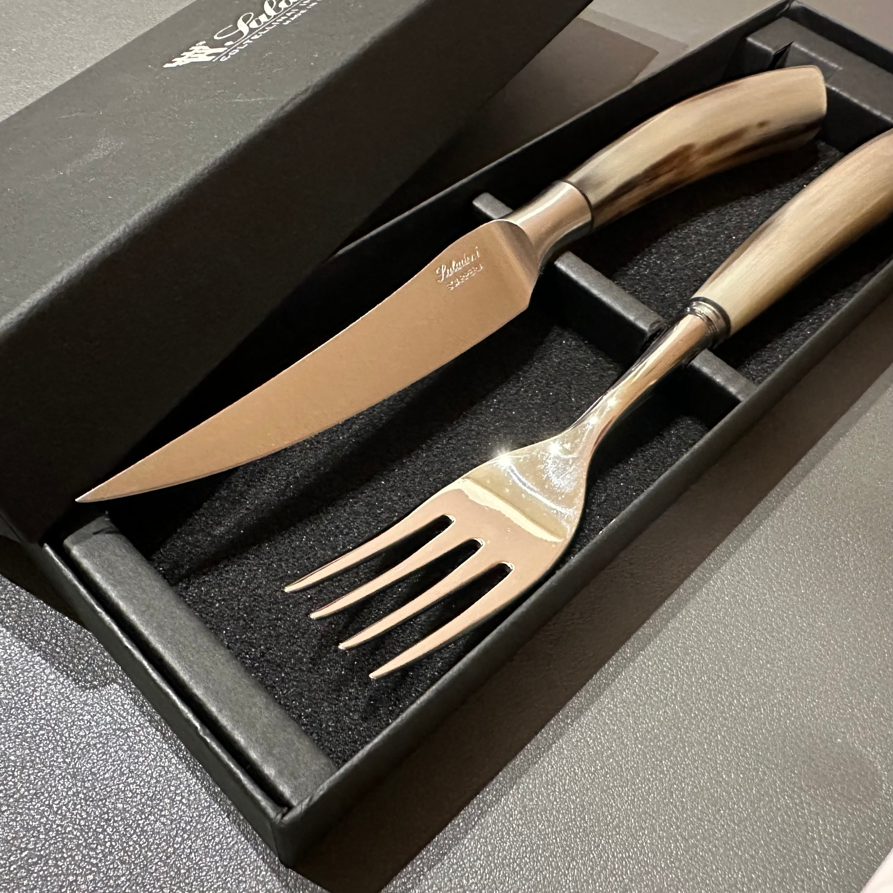 【牛角】ステーキ用テーブルナイフとテーブルフォークのセット