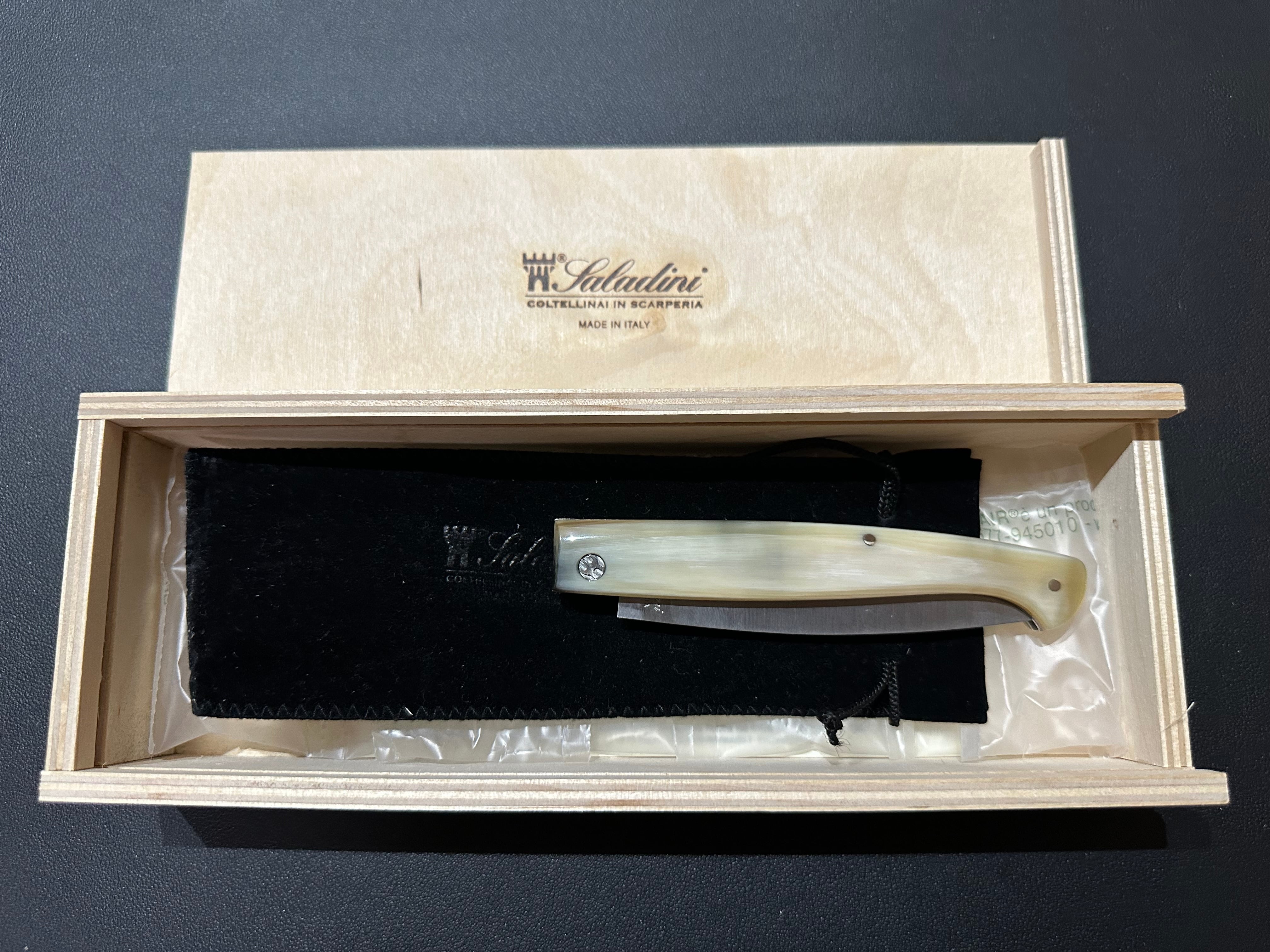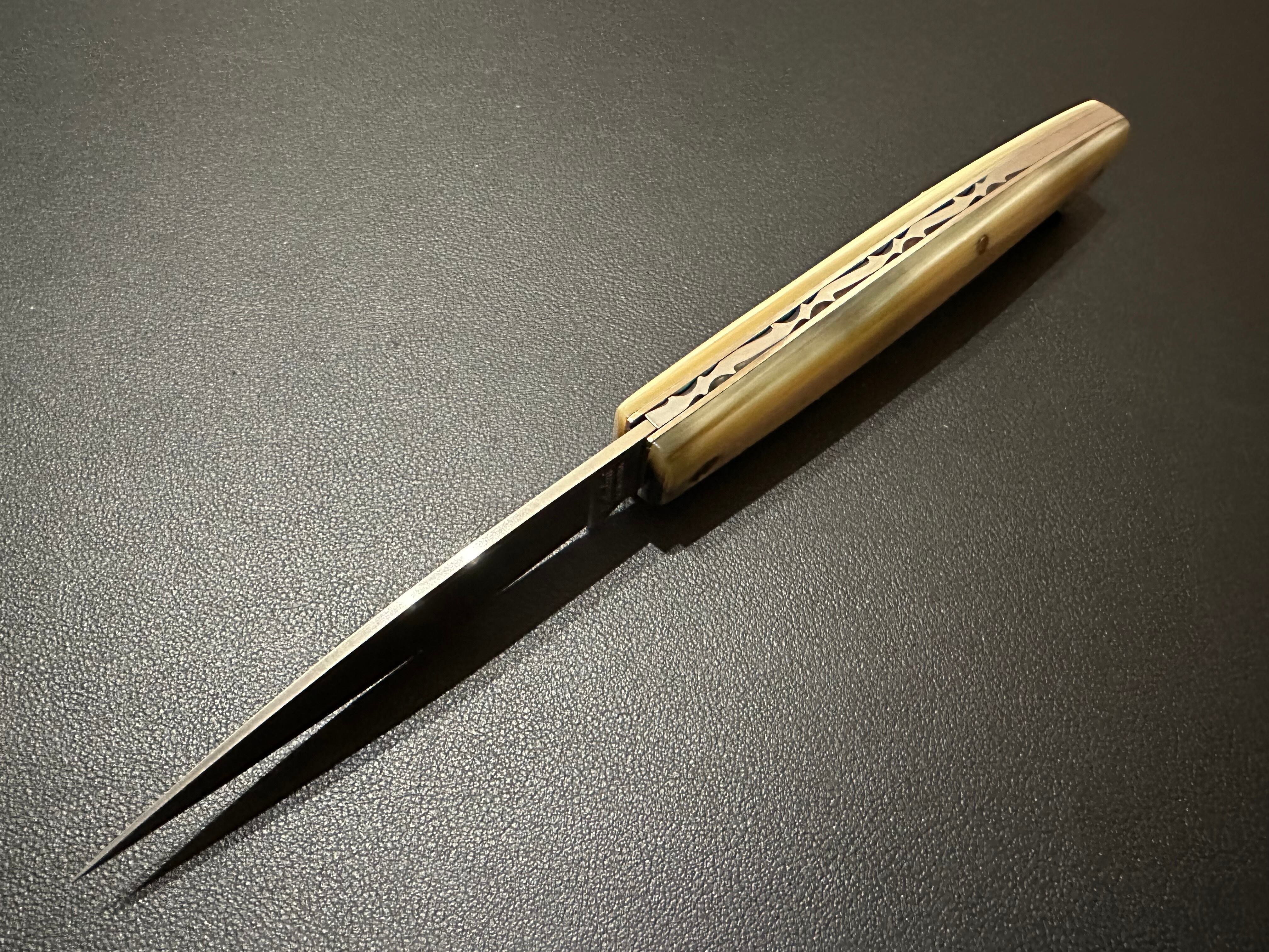 サラディーニ社が提案するモデルは、古典的なサルデーニャのモデルからインスピレーションを得ていますが、その構成は全面的に見直されており柄の内部には鋼板があり刃の一部をロックするシンプルなスプリングが付いています。